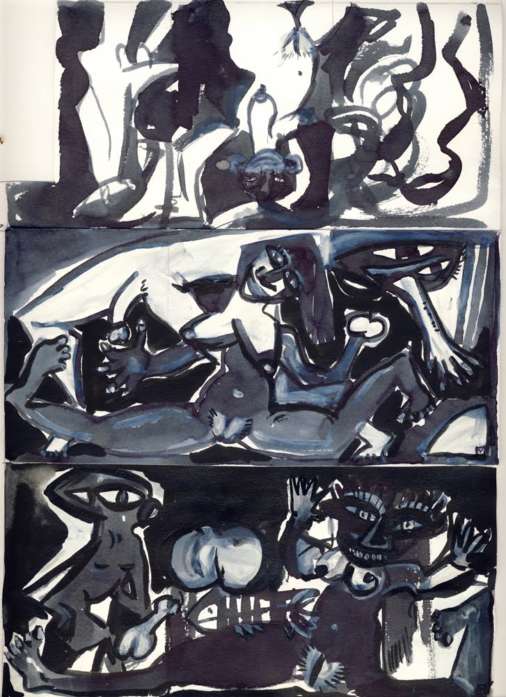Petite variation à propos de l'amour 01 et 02, encre de Chine, lavis et gouache